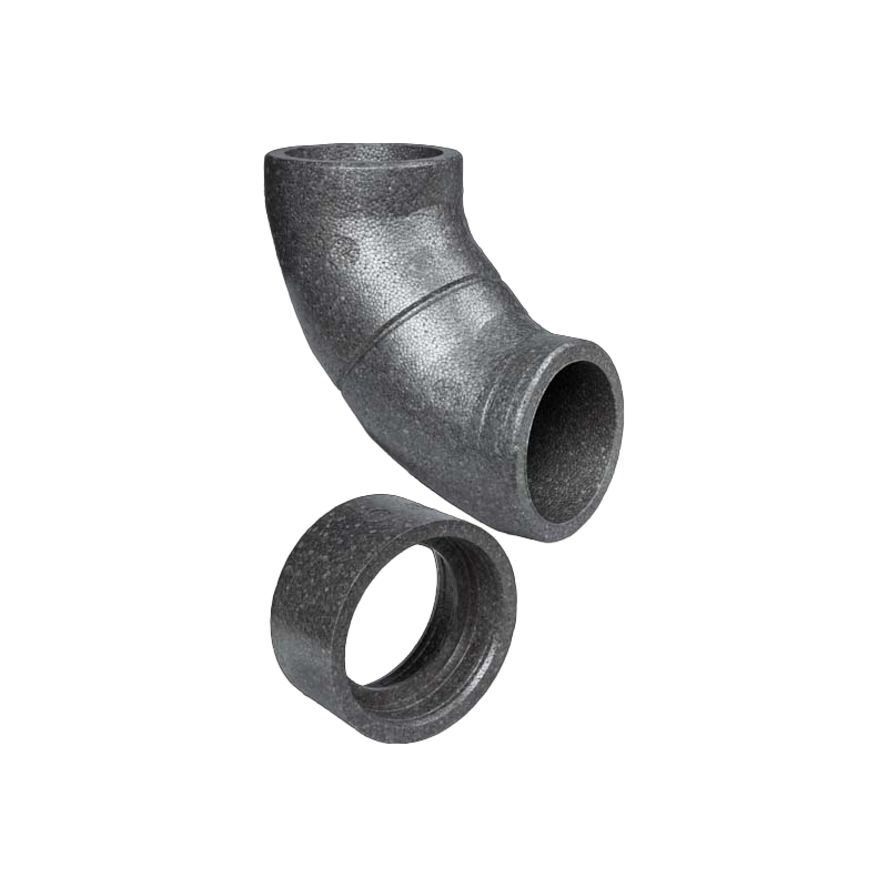 Derékszögű irányváltó elem EPP anyagból. Áramlástechnikailag optimalizált belső ívvel rendelkezik a nyomásveszteség minimalizálása érdekében. Könnyű súlya miatt egyszerűsíti a szerelést a magasban.