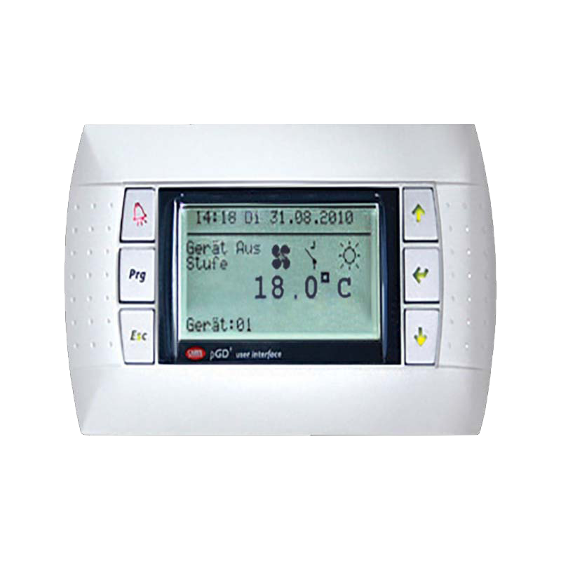 Felhasználóbarát kezelőpanel LCD kijelzővel a VRL-C sorozatú szellőztetőgépekhez. Segítségével beállítható a ventilátorfokozat és a heti program.